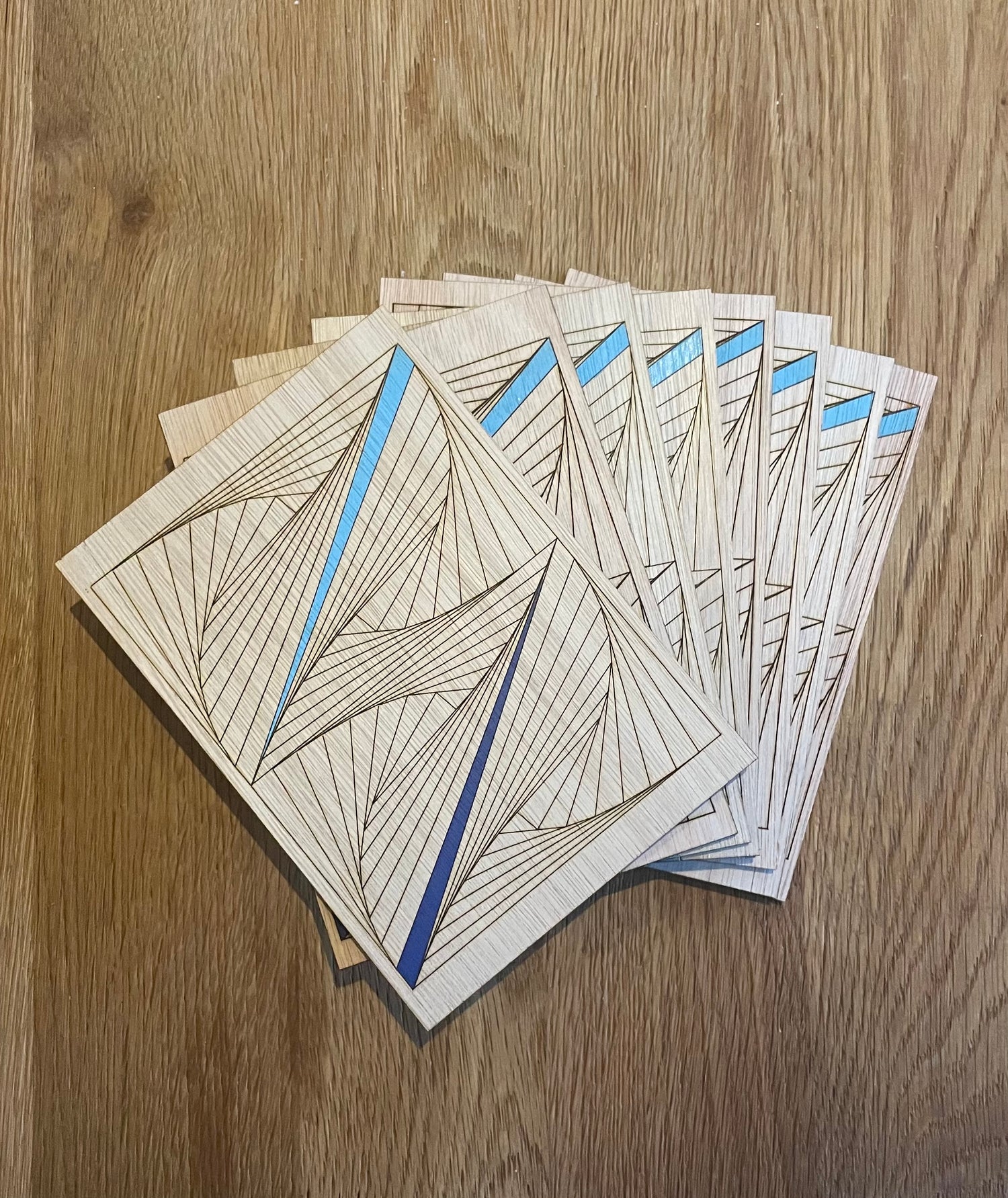 Etta Key designed wooden postcards. Engraved and painted with original designs. Suitable...