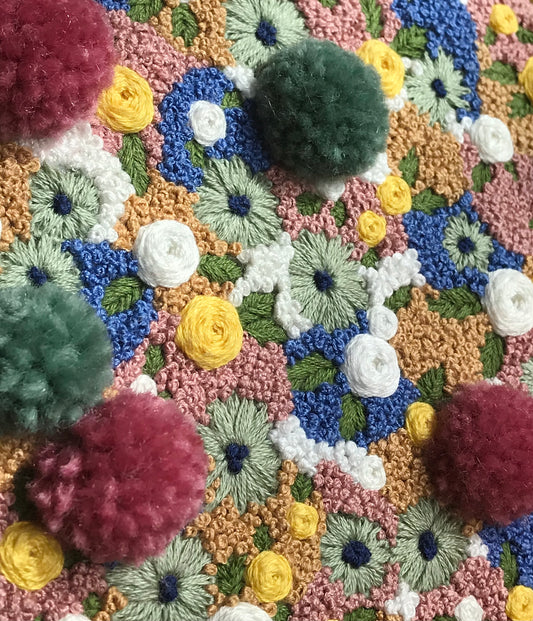 Blue, Green and Pink Floral Embroidery